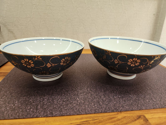 (SOLD)墨綠色底金花圖案碗 - 九谷美山